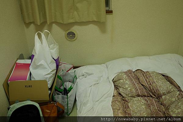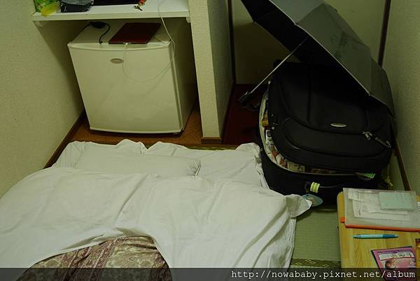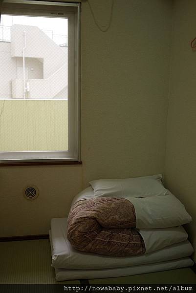 一打開門真的空間不大,塌塌米的地板上有床墊,棉被和枕頭在角落~~